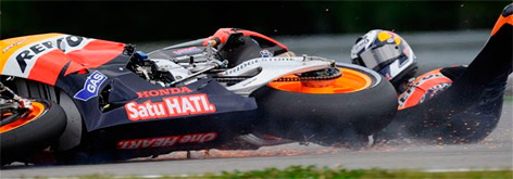Надо помнить, что когда мотоцикл падает, на нем могут образовываться какие-то повреждения или трещины. В том числе может быть поврежден топливный бак. Поэтому ни в коем случае нельзя курить вблизи упавшего мотоцикла. Также важно смотреть под ноги, ведь наступив на растекшееся масло, можно поскользнуться и серьезно травмироваться.